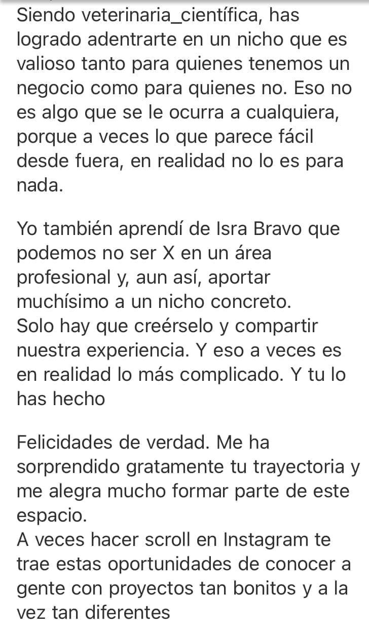 Agradecerte el tiempo y dedicación que pones para ayudar a quienes tenemos una idea pero no sabemos cómo llevarla a cabo. A traves de lo que he leído, lo que destaco es que proyectas honestidad y amor por lo que haces. Por otra parte, te veo feliz con lo que haces y eso es una inspiración para quienes queremos hacer lo que amamos. Gracias, buena suerte y que sigas siendo tan auténtica.