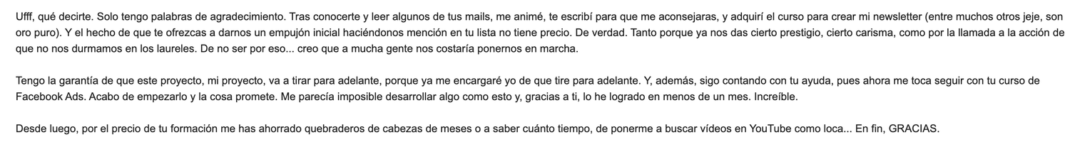Sin embargo en este curso lo que te ofrezco es acortarte el camino y ahorrarte tiempo porque llevo un año probando todas sus funcionalidaes y poniéndolas en práctica en dos newsletters reales.