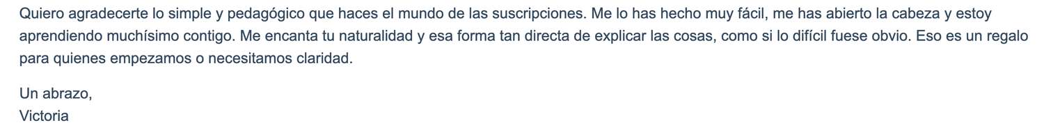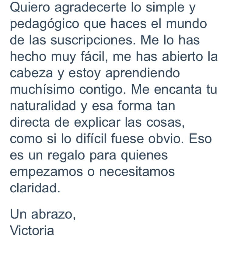 Mucha gente novata pasa dando palos de ciego con su niusleter mucho tiempo, con acciones erráticas que no conducen a nada. Si entras en el Club vas a comenzar con buen pie y con un camino más claro. Vas a ver cómo han crecido otras personas y te vamos a apoyar en que inicies bien desde el primer momento.