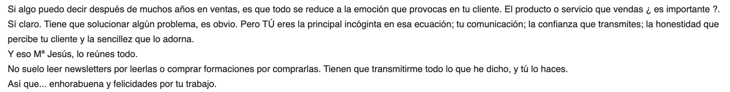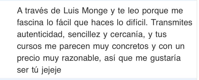 Quiero relaciones a largo plazo en las que acabe conociendo a mis alumnos y me convierta en un activo de alto valor para ellos y que ellos puedan sacarme el partido que se obtiene cuando estas relaciones se extienden en el tiempo.